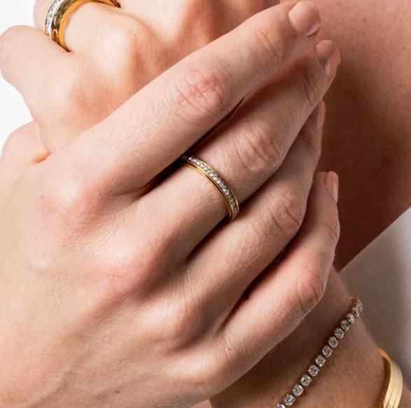 The ring features a rotating band that allows you to spin it to help reduce stress, calm anxiety, and improve focus. The smooth motion provides a subtle way to relieve nervous energy throughout the day.