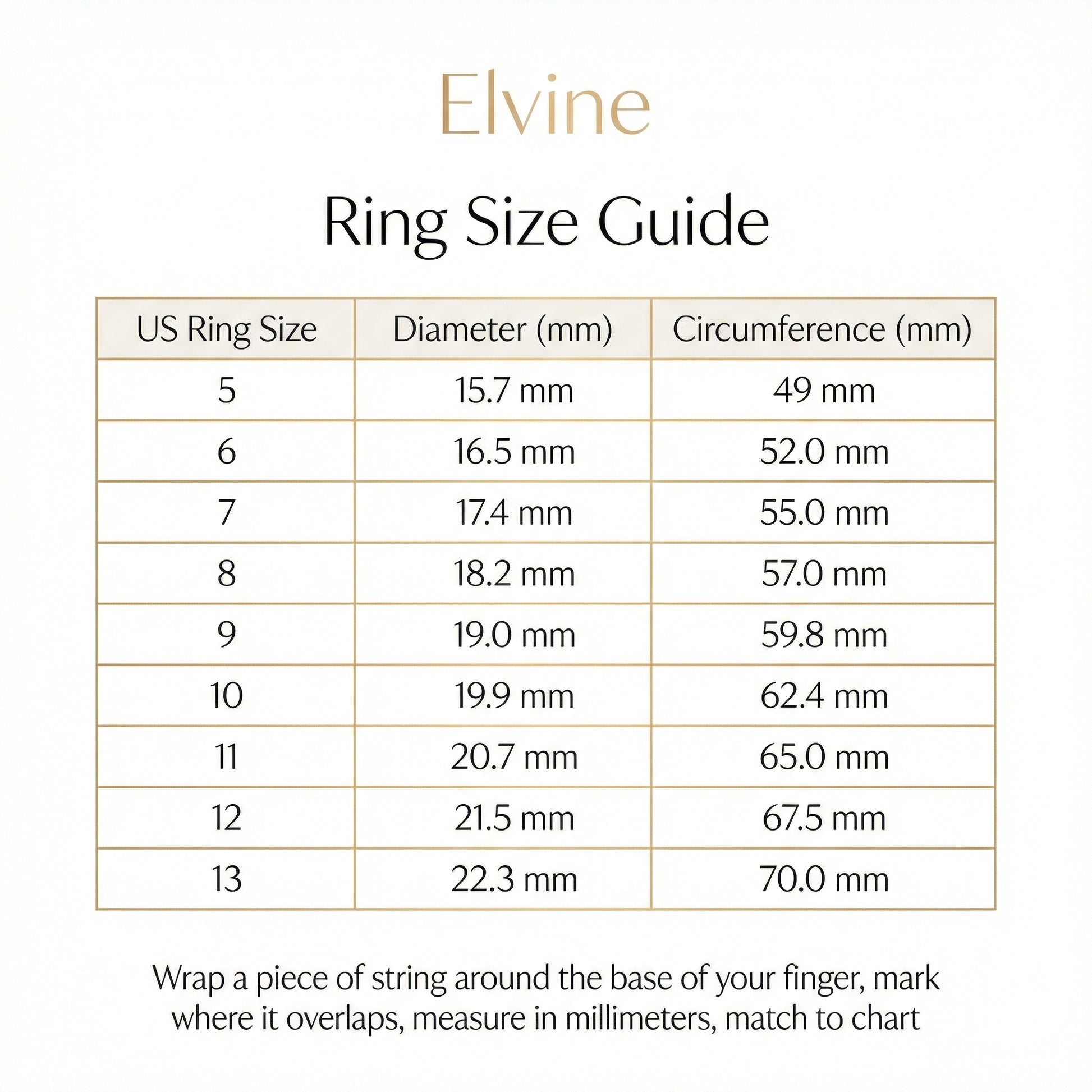 The ring is available in sizes 5 to 13. To ensure the best fit, please check the sizing guide before purchasing.